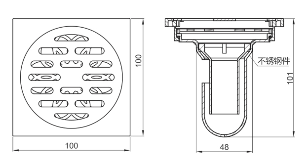 不銹鋼地漏內部設計專用拆洗開關,操作簡單,輕巧靈活,可重復拆洗,以防地漏污濁或堵塞,清潔方便