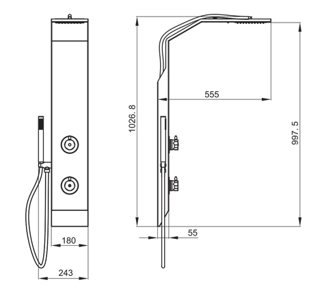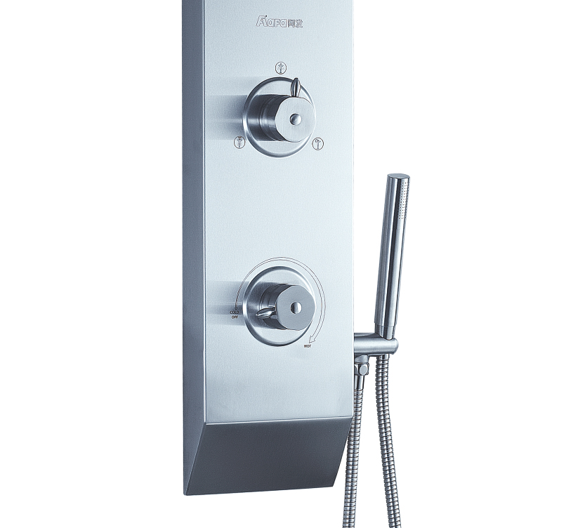 沐浴柱由不銹鋼整體壓鑄成型,簡潔時尚、結實耐用。上下呼應的斜角設計,讓您的浴室更具美感,又避免了金屬銳角對人體的意外碰撞,,彰顯人性關懷。