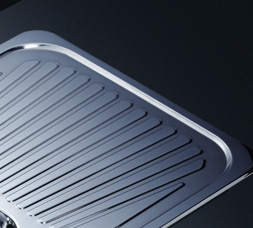 水槽四邊條采用一次成型的折彎加強筋工藝,雙倍堅固,承重力更強,解決了普通焊接工藝容易出現的凹點、脫焊、易割手等問題。專業配置的密封條和固定夾,安裝平整度高,不滲水,不松動