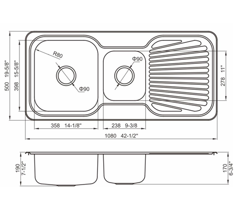 槽底采用斜面壓痕,四輻導(dǎo)流槽設(shè)計(jì),與平面壓痕和無痕水槽相比,導(dǎo)水更為流暢,下水更迅速,能有效防止積水,消除沉淀物