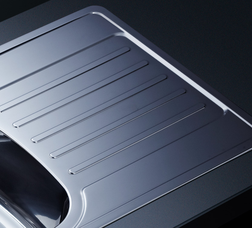 水槽四邊條采用一次成型的折彎加強筋工藝,雙倍堅固,承重力更強,解決了普通焊接工藝容易出現的凹點、脫焊、易割手等問題。專業配置的密封條和固定夾,安裝平整度高,不滲水,不松動