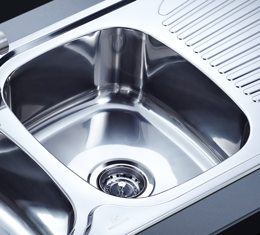 阿發(fā)水槽立邊采用國際先進的10-25°小R角一次成型拉伸技術(shù),更具立體感與時尚潮流,亦能充分擴展水槽利用空間;一次成型拉伸技術(shù),杜絕了焊接工藝易產(chǎn)生的水槽生銹,脫焊事故,充分保障水槽50年以上的使用壽命