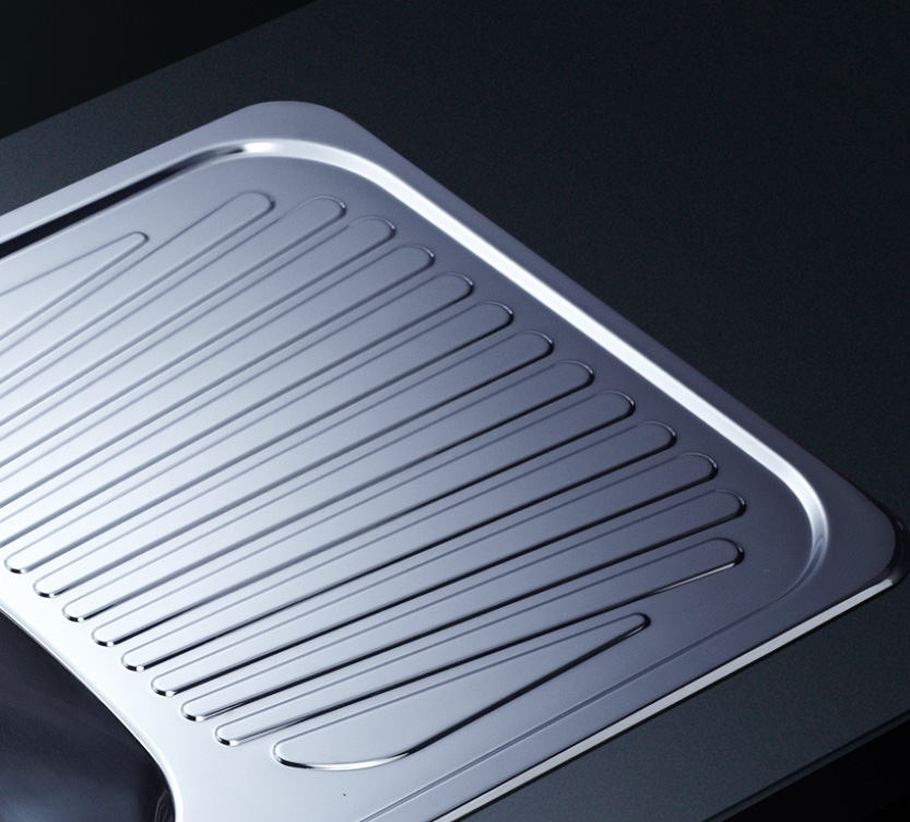 阿發(fā)水槽整體經(jīng)拉絲處理,質(zhì)地更加光滑,視覺更加柔和。能有效抵擋異物撞擊,刮傷及磨損,防止油污沾染,常用常新;柔和的光澤令水槽平添高雅氣質(zhì),更能避免鏡面材質(zhì)反射的光污染