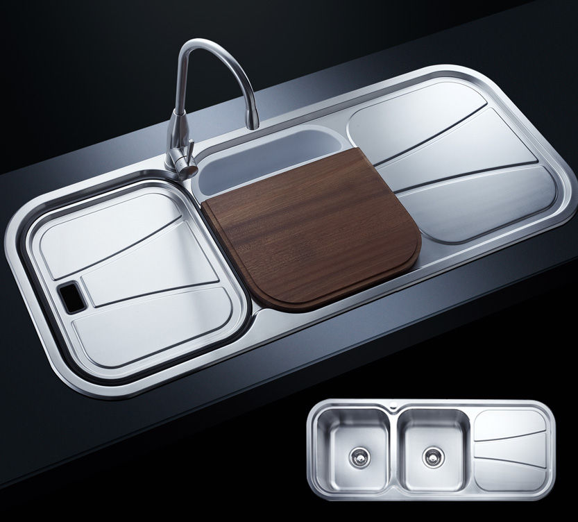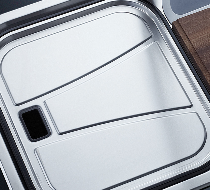 槽底采用斜面壓痕,四輻導(dǎo)流槽設(shè)計(jì),與平面壓痕和無(wú)痕水槽相比,導(dǎo)水更為流暢,下水更迅速,能有效防止積水,消除沉淀物