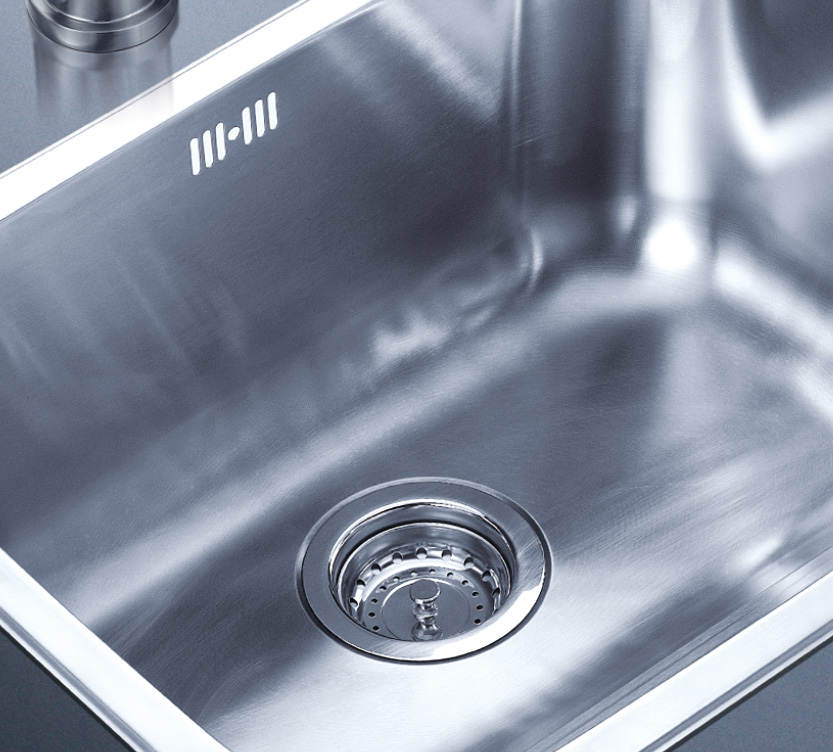 水槽四邊條采用一次成型的折彎加強筋工藝,雙倍堅固,承重力更強,解決了普通焊接工藝容易出現的凹點、脫焊、易割手等問題。專業配置的密封條和固定夾,安裝平整度高,不滲水,不松動