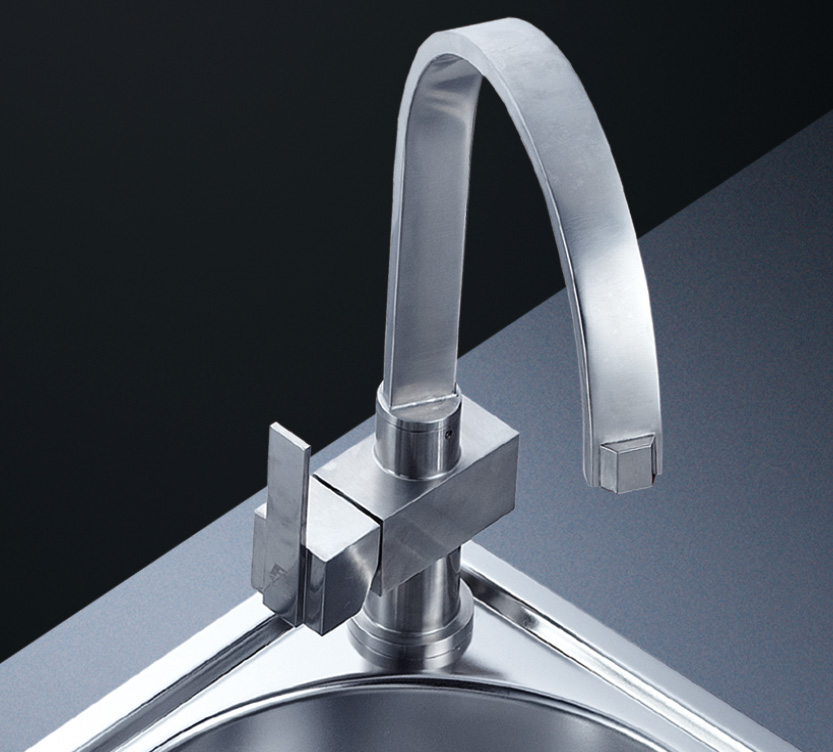 阿發水槽立邊采用國際先進的10-25°小R角一次成型拉伸技術,更具立體感與時尚潮流,亦能充分擴展水槽利用空間;一次成型拉伸技術,杜絕了焊接工藝易產生的水槽生銹,脫焊事故,充分保障水槽50年以上的使用壽命
