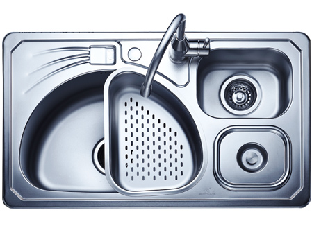 槽底采用斜面壓痕,四輻導流槽設計,與平面壓痕和無痕水槽相比,導水更為流暢,下水更迅速,能有效防止積水,消除沉淀物