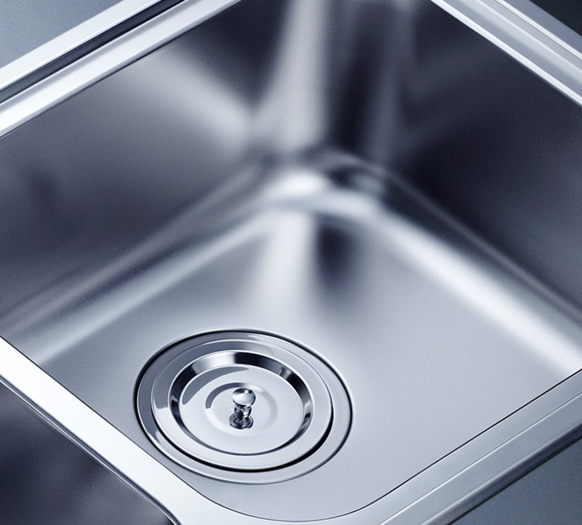 阿發水槽整體經拉絲處理,質地更加光滑,視覺更加柔和。能有效抵擋異物撞擊,刮傷及磨損,防止油污沾染,常用常新;柔和的光澤令水槽平添高雅氣質,更能避免鏡面材質反射的光污染