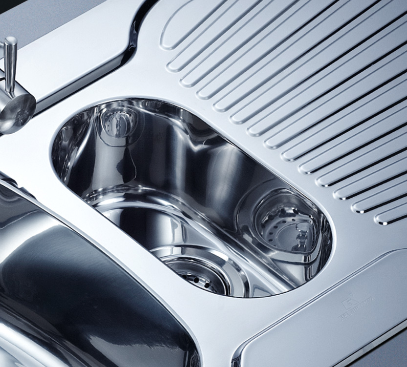 阿發水槽立邊采用國際先進的10-25°小R角一次成型拉伸技術,更具立體感與時尚潮流,亦能充分擴展水槽利用空間;一次成型拉伸技術,杜絕了焊接工藝易產生的水槽生銹,脫焊事故,充分保障水槽50年以上的使用壽命