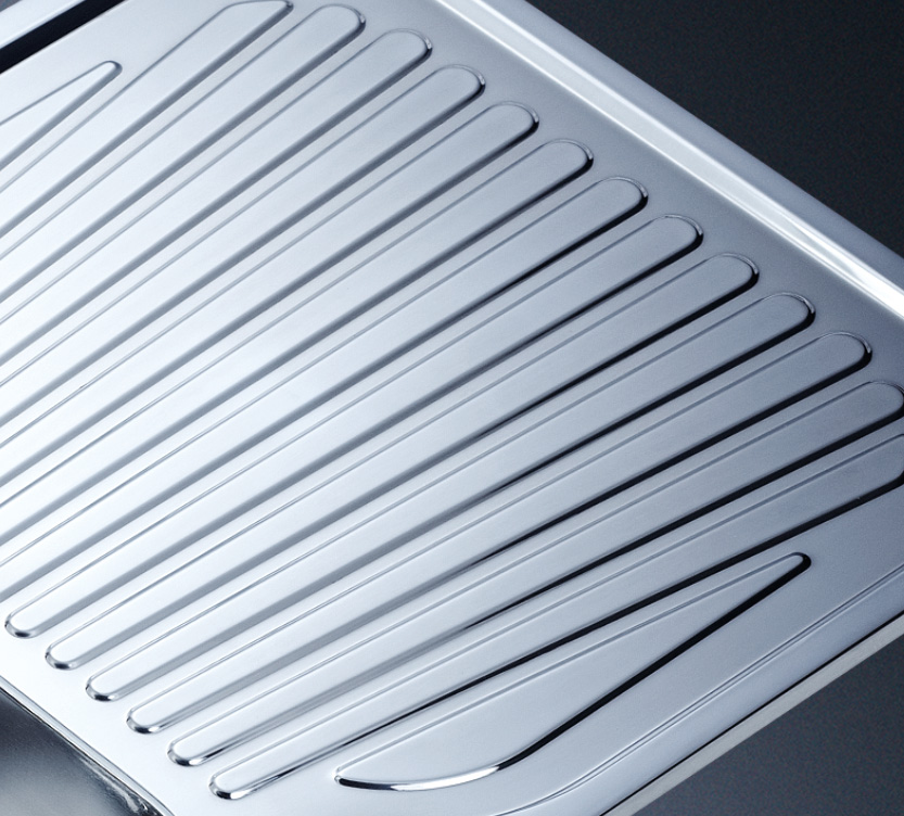 阿發(fā)水槽立邊采用國際先進的10-25°小R角一次成型拉伸技術,更具立體感與時尚潮流,亦能充分擴展水槽利用空間;一次成型拉伸技術,杜絕了焊接工藝易產生的水槽生銹,脫焊事故,充分保障水槽50年以上的使用壽命
