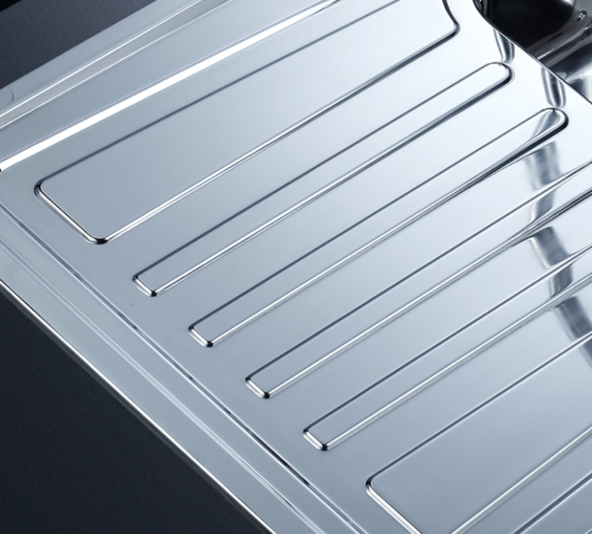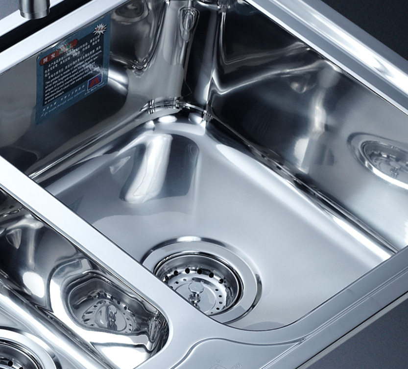 阿發水槽立邊采用國際先進的10-25°小R角一次成型拉伸技術,更具立體感與時尚潮流,亦能充分擴展水槽利用空間;一次成型拉伸技術,杜絕了焊接工藝易產生的水槽生銹,脫焊事故,充分保障水槽50年以上的使用壽命