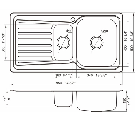 槽底采用斜面壓痕,四輻導流槽設計,與平面壓痕和無痕水槽相比,導水更為流暢,下水更迅速,能有效防止積水,消除沉淀物