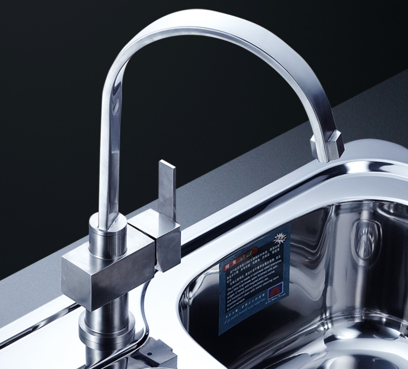 阿發水槽立邊采用國際先進的10-25°小R角一次成型拉伸技術,更具立體感與時尚潮流,亦能充分擴展水槽利用空間;一次成型拉伸技術,杜絕了焊接工藝易產生的水槽生銹,脫焊事故,充分保障水槽50年以上的使用壽命