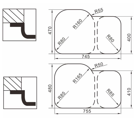 水槽四邊條采用一次成型的折彎加強筋工藝,雙倍堅固,承重力更強,解決了普通焊接工藝容易出現的凹點、脫焊、易割手等問題。專業配置的密封條和固定夾,安裝平整度高,不滲水,不松動