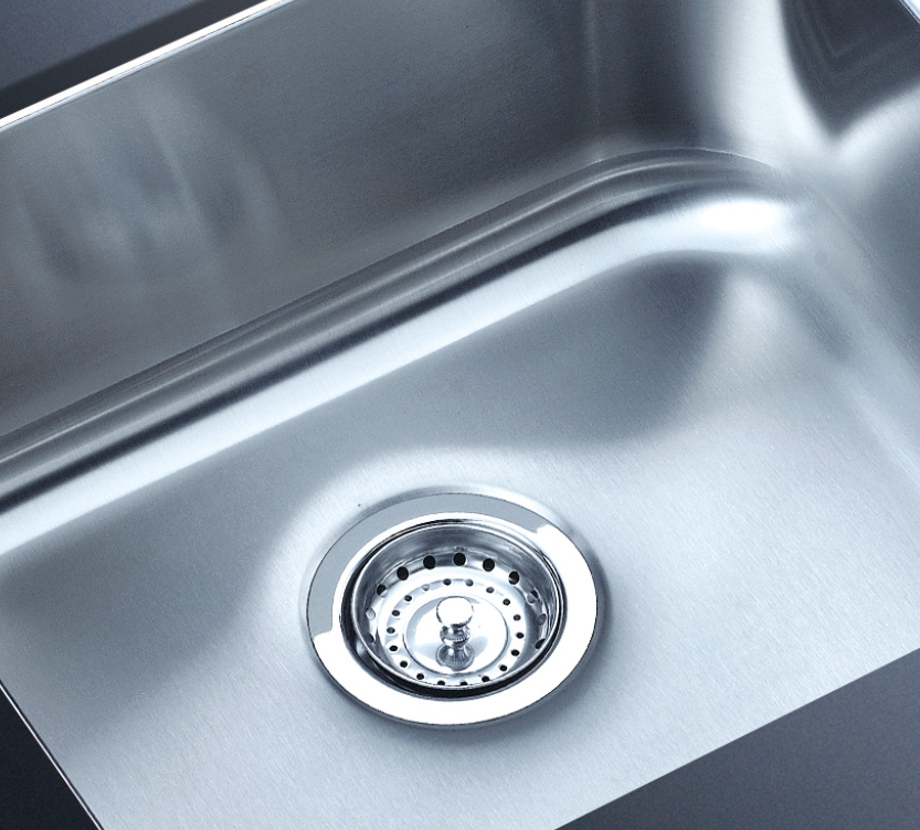 阿發水槽整體經拉絲處理,質地更加光滑,視覺更加柔和。能有效抵擋異物撞擊,刮傷及磨損,防止油污沾染,常用常新;柔和的光澤令水槽平添高雅氣質,更能避免鏡面材質反射的光污染