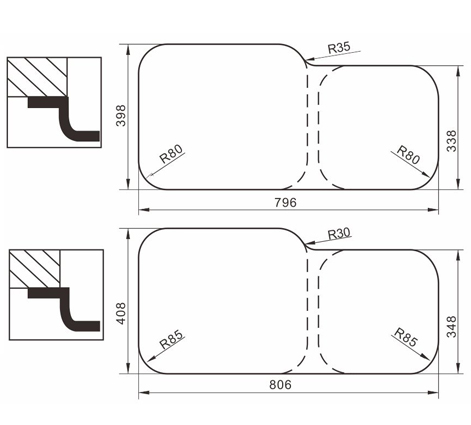 水槽四邊條采用一次成型的折彎加強筋工藝,雙倍堅固,承重力更強,解決了普通焊接工藝容易出現的凹點、脫焊、易割手等問題。專業配置的密封條和固定夾,安裝平整度高,不滲水,不松動