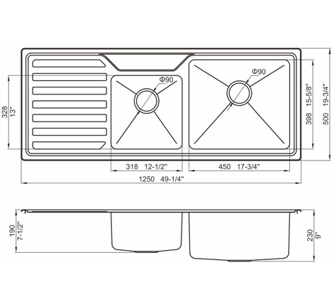 槽底采用斜面壓痕,四輻導流槽設計,與平面壓痕和無痕水槽相比,導水更為流暢,下水更迅速,能有效防止積水,消除沉淀物