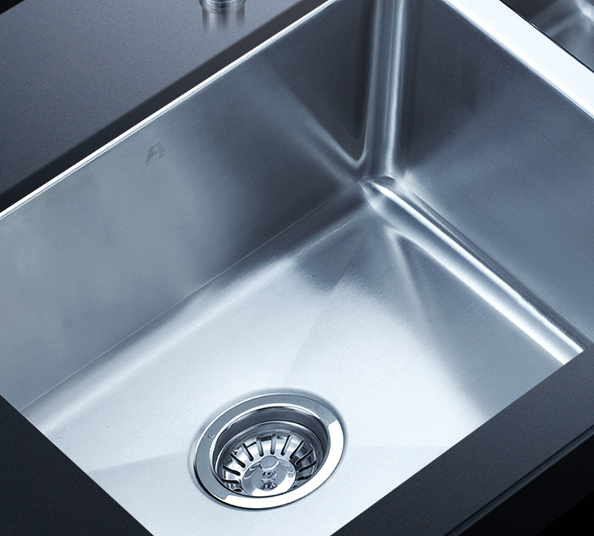 阿發(fā)水槽整體經(jīng)拉絲處理,質(zhì)地更加光滑,視覺更加柔和。能有效抵擋異物撞擊,刮傷及磨損,防止油污沾染,常用常新;柔和的光澤令水槽平添高雅氣質(zhì),更能避免鏡面材質(zhì)反射的光污染