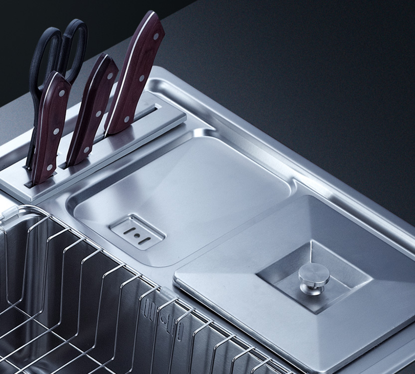 完美的水槽加固設(shè)計,有效防止溢水,水槽槽體一次成形的凹型設(shè)計,免除流水滲漏損壞櫥柜,完美凹型水槽,打造優(yōu)雅廚房