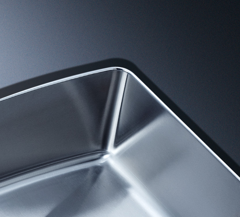 阿發水槽立邊采用國際先進的10-25°小R角一次成型拉伸技術,更具立體感與時尚潮流,亦能充分擴展水槽利用空間;一次成型拉伸技術,杜絕了焊接工藝易產生的水槽生銹,脫焊事故,充分保障水槽50年以上的使用壽命