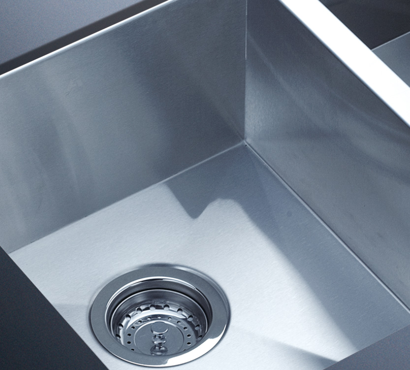 阿發(fā)水槽整體經(jīng)拉絲處理,質(zhì)地更加光滑,視覺更加柔和。能有效抵擋異物撞擊,刮傷及磨損,防止油污沾染,常用常新;柔和的光澤令水槽平添高雅氣質(zhì),更能避免鏡面材質(zhì)反射的光污染