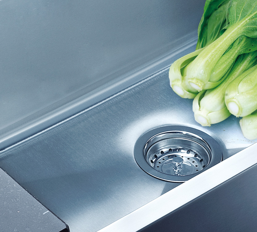 阿發水槽整體經拉絲處理,質地更加光滑,視覺更加柔和。能有效抵擋異物撞擊,刮傷及磨損,防止油污沾染,常用常新;柔和的光澤令水槽平添高雅氣質,更能避免鏡面材質反射的光污染