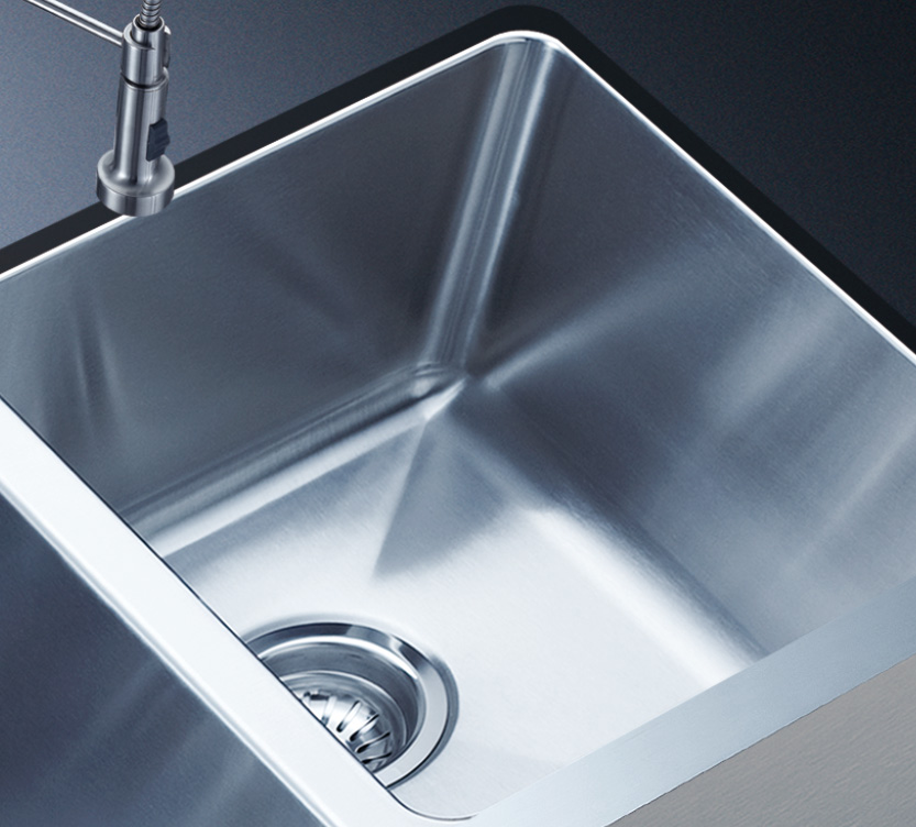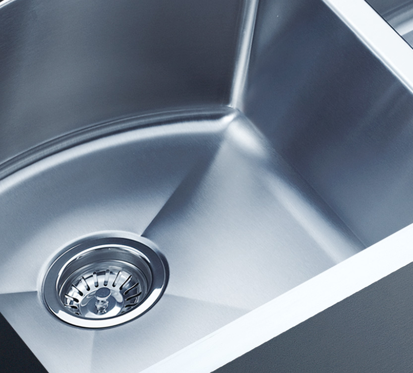 阿發水槽整體經拉絲處理,質地更加光滑,視覺更加柔和。能有效抵擋異物撞擊,刮傷及磨損,防止油污沾染,常用常新;柔和的光澤令水槽平添高雅氣質,更能避免鏡面材質反射的光污染