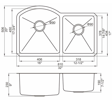 槽底采用斜面壓痕,四輻導流槽設計,與平面壓痕和無痕水槽相比,導水更為流暢,下水更迅速,能有效防止積水,消除沉淀物