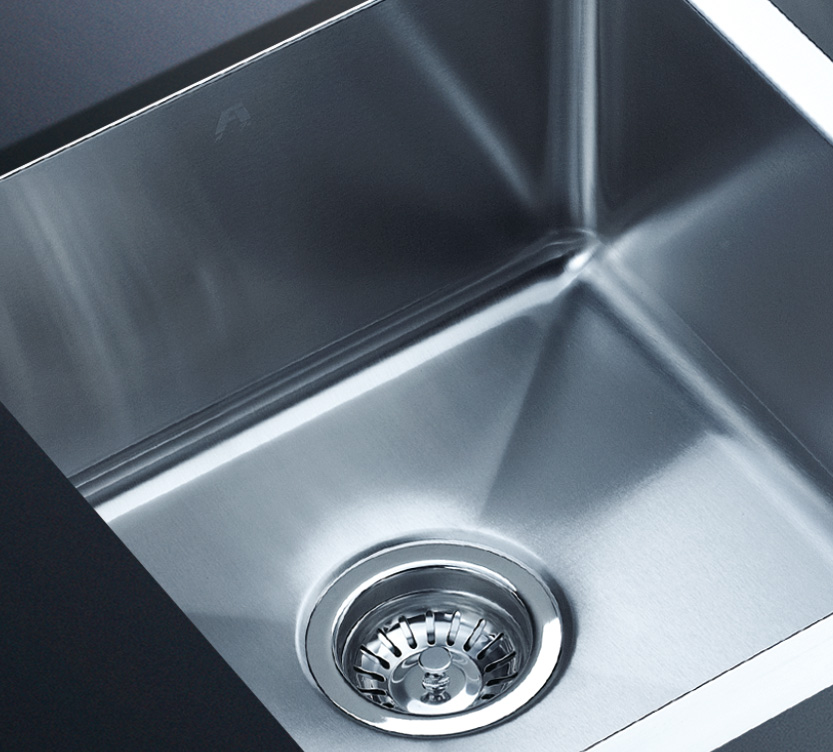阿發水槽整體經拉絲處理,質地更加光滑,視覺更加柔和。能有效抵擋異物撞擊,刮傷及磨損,防止油污沾染,常用常新;柔和的光澤令水槽平添高雅氣質,更能避免鏡面材質反射的光污染